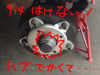 | 問題その2、、、結局ハブの頭がでかすぎて、、、914ホイール履けず。。。いい写真がないのだけど、、、ぼっこりしすぎて奥まで入らない! アルミに中側をけずるか?という話にもなったが、中側どころか、まん中、、、、、えーい、どかーん!となくしちゃわないと入らない感じ。。。ど、どうする? |