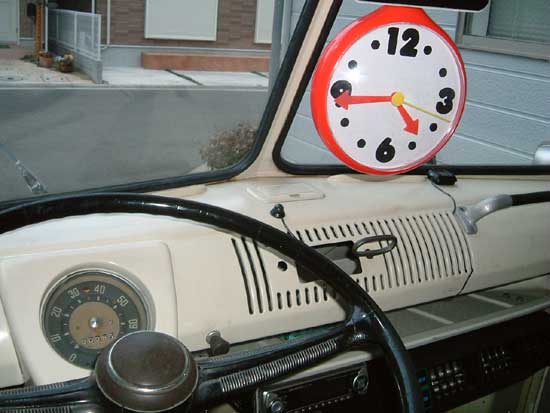 No.17を読んでくれたみなさんはご存じの通り、しんちろバスは唯一のスピードメーターの針がおれてしまい、その後いろいろと探しているのですがとにかくなんとか直してオリジナリティを保つか、もっとリミットの大きい60年式くらいの80マイルメーターにするか、、、、うーん悩む。 で、まぁとにかくメーターなくても走れるから、しゅっしゅっぽっぽーの音を消すため、スピードメーターケーブルを外してお出かけすることに。確かに音はしなくなりました!あ、でも外したケーブルがぶるぶるしカタカタした音はするけどね。 メーターなんてなくても。。。へっちゃらへっちゃら!、、、、、、ぐすん、やっぱり寂しい。メーターちゃん!早く帰ってきて!ということでル−ムミラーに メーターを増設!これでメーターレスを卒業!っておい!だだの時計じゃん!しかも840円! はい、オチおわり。でもこれだけで何か雰囲気が明るくなります!でも実はひっかけてるだけなのでゆらゆらしてしまうので 走行時は外します! なんじゃそりゃ! 一昨年まで住んでいた北鎌倉を通過し鎌倉霊園にお墓参りに行きました! みなさんみたいに僕は同じVWバスとすれ違ったことがありません!でもこの日は赤のビ−トルとすれ違い、こっちから手を振ったら向こうも振り返してくれました!最初はなんだ!?って顔をされましたが。。。最近BBSにたくさんのVW乗りが遊びにきてくれています!バス乗りも増えてきました!さてさて集会を開く日も近いかな!!!でも早く春がきませんかねぇ。さむいもんなぁ。。。 |