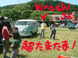| GWみんなのようにキャンプや旅行にも行けず、、、、そこで服部牧場でBBQリターンズをすることにしました! ACLの主要メンバーがみんなキャンプや旅行でいないことが分かっていたので、今回は特に告知せず、メールアドレスのわかる一部の人だけさそってのBBQとしました。 第2回ACLBBQをやるときはちゃーんと告知するからね! 行けるよぉ!と言ってくれたツカさん&ツカさんの友達一家、ヤマハタさん。それからこういちさんとTAKEさん、しんちろの5台での予定でした! TAKEさんとは家がご近所なので一緒に服部牧場まで来ました。途中渋滞もありましたが予定通り11時には到着!渋滞にはまったみんなを待ちます。 ツカさんとヤマハタさんが到着してまもなく、 一台のアーリーが近づいて来ます。だれ??? こういちさんのは白/青のツートンのはず?一体だれだろう!?な、なんと、偶然現れたhiroshiさん!どうやらしんちろバスの日々を見て、たまたまBBQをしに服部牧場へ来てみたら、おいらたちがいた!ってことだったようです!うーん!すごい偶然!告知していないのに。 (?_?)/いやーびっくりしました!一瞬なにが起きたかわからず、誰かが情報を流しているのかと思っちゃった!(笑) さてさてうれしいゲストがあらわれたというところで、こういちさんも到着。アーリ4台、レイト2台でのBBQとなりました!いやーしかしツカさんのBBQ装備はすごい!手際もいいし、、、今回はツカドッグなしと聞いて少し残念がっていましたが、しかーし!今回はツカ風チヂミ&ツカスモークが登場!うまい、うますぎる、まともやプロ級。BBQ上級者ですねー。こういちさんのクラムチャウダーなどもいただいて、、、、おいらはワンパターンにまたしんちろチキンを用意してきました!ふー満腹です! いやーしかしやっぱり緑とVWはあいます。これはもう服部牧場トレッフェンです!第二回ACLBBQはまたここになるのかな?それとも違う場所か?それはなぞですが、服部牧場ありがとう! |