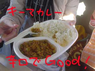 しかし、寒かった。。。外は寒いので、買ったキーマカレーは駐車場に停めたしんちろ号内で食べました。辛くてこっちもGood!